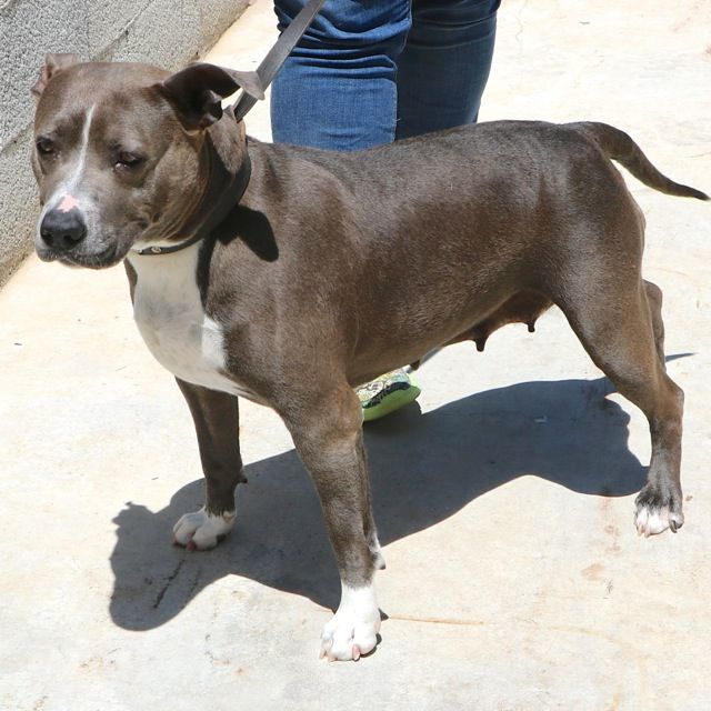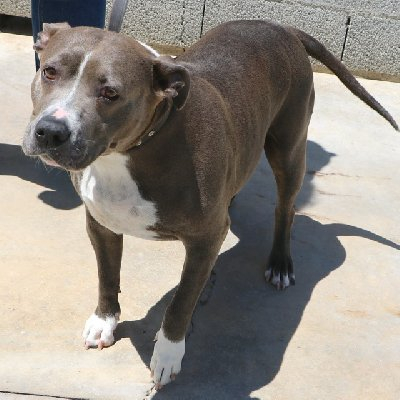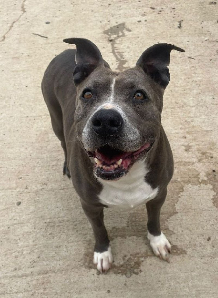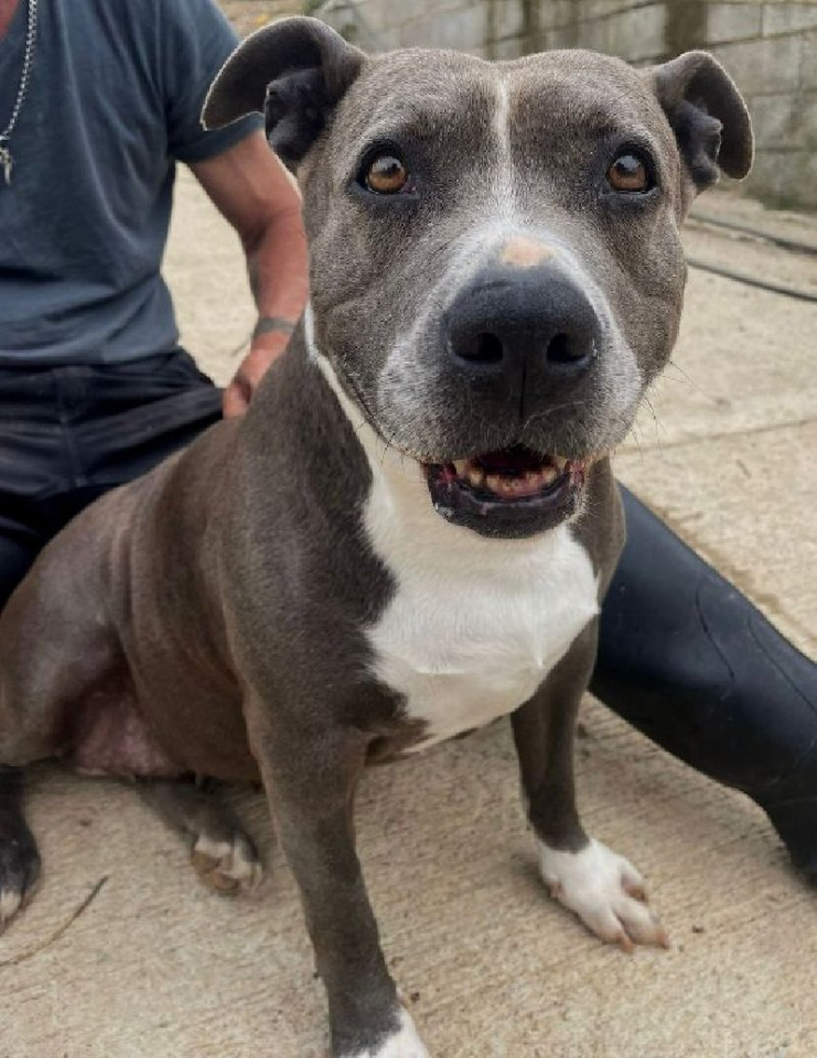 Bella is een prachtige American Stafford van 6 jaar, met een zilveren vacht en een vriendelijke inborst. Al vier jaar verblijft ze bij ons in de refugio; véél te lang voor zo'n lieve, dappere ziel.