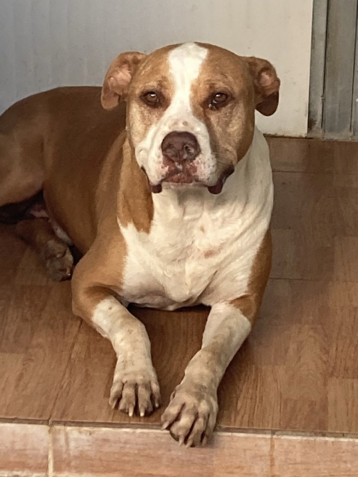 Sindsdien is Dax een van de vele gedumpte honden in onze refugio. Hij is geen jonge hond meer, is altijd gewend geweest aan een warm thuis, een zachte zetel en mand, en nu zit hij in een eenzaam hok. Als Stafford is het sowieso al moeilijk om een thuis te vinden, laat staan een een Staff van zijn leeftijd.