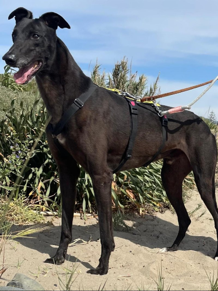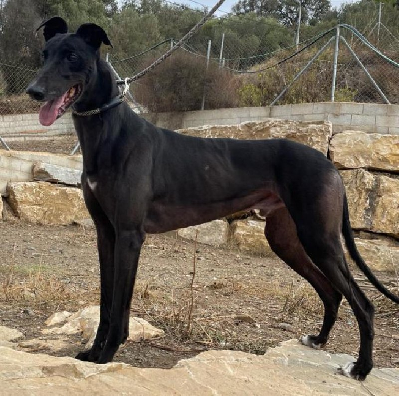 Dower is een grote hond (Greyhound): hij is ca. 68 cm hoog en weegt ca. 35 kg.