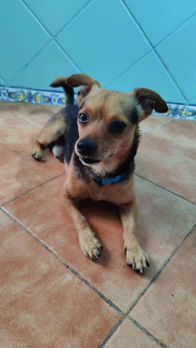 Gitanito is een kleine hond (Cross): hij is ca. 35 cm hoog en weegt ca. 5 kg.