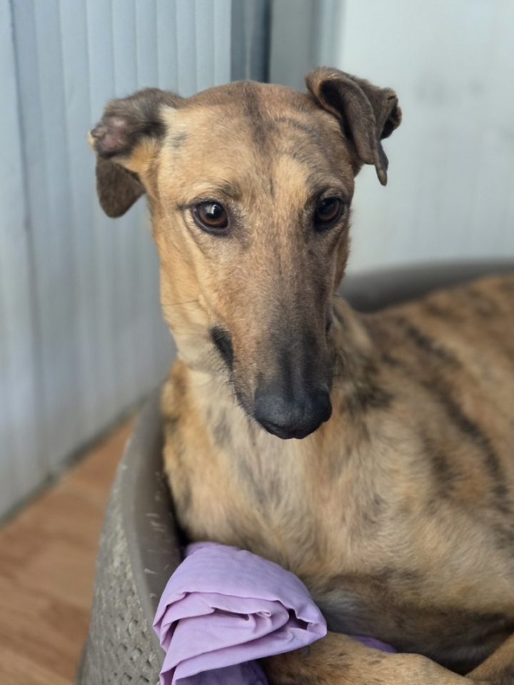 Ilusion is een echte verschijning: statig, elegant, met een trotse houding die verraadt wat een prachtige hond ze weer kan worden. Maar haar verleden laat diepe sporen na. Ze is nog wantrouwig en zoekt iemand die haar met geduld en respect benadert, iemand die haar kan laten zien dat er ook goede mensen bestaan.