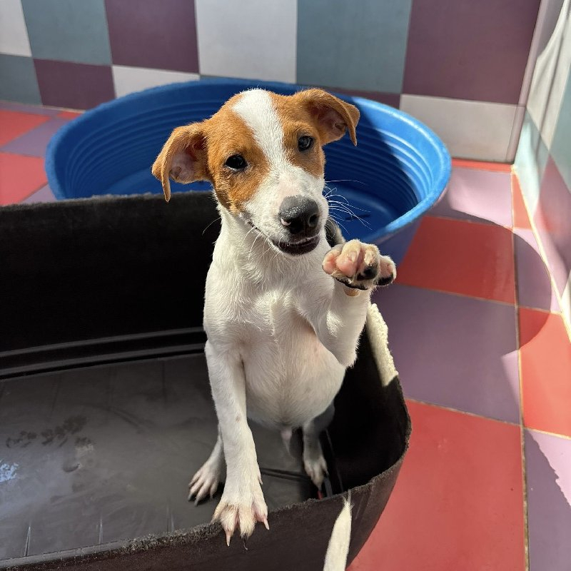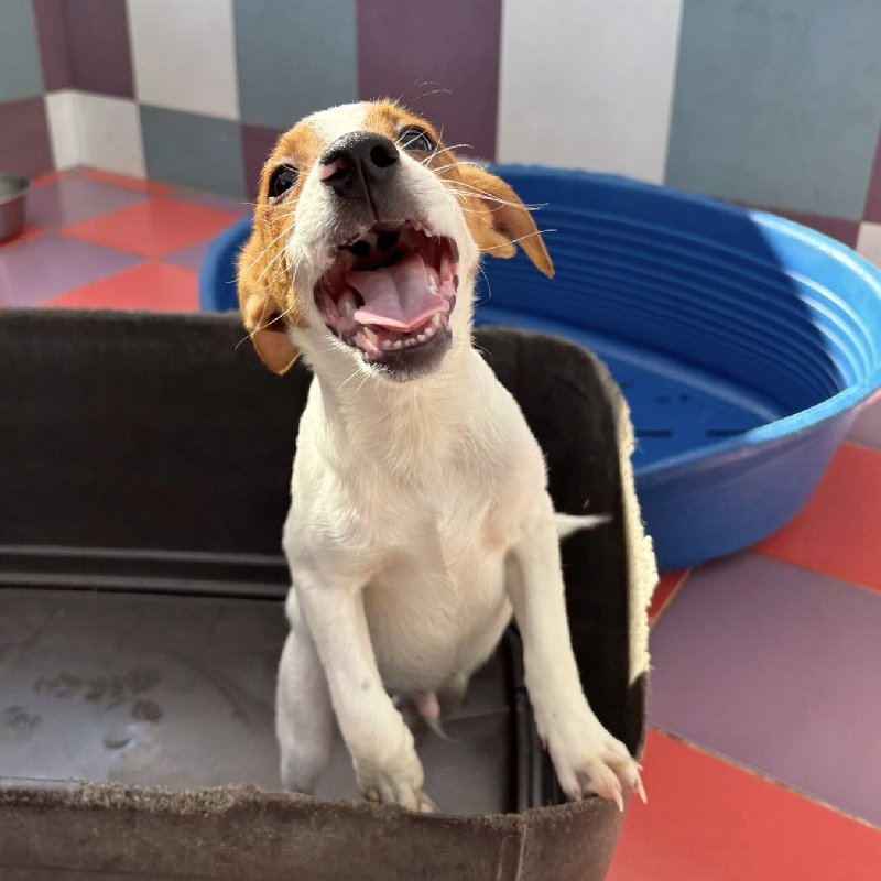 Juleke werd gevonden alleen en verlaten op straat, een vriendelijke man nam hem mee en bracht hem naar ons. Hij is een hele aanhankelijke hond, heel mensgericht! Hij speelt graag met zijn vriendjes maar zijn verzorgers staan zonde twijfel op nummer 1 voor deze jongen. Juleke is een actief baasje die heel graag bezig is, voor hem zijn we dus op zoek naar een familie die graag met hem de wereld gaat ontdekken.