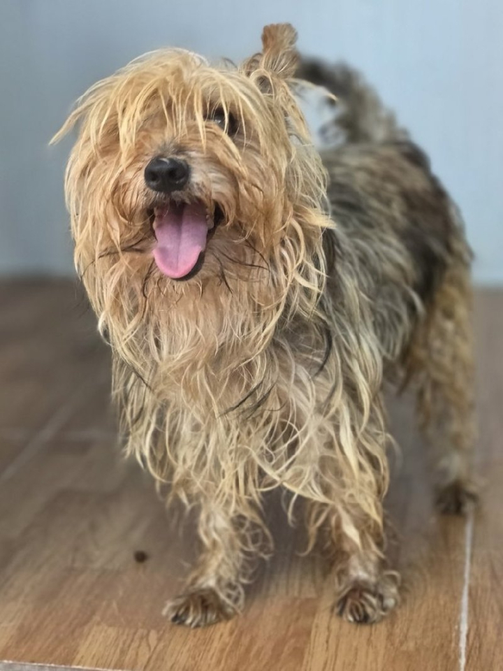 Nathan is een kleine hond (Cross Yorkshire Terrier): hij is c a. 36 cm hoog en weegt ca. 8 kg.