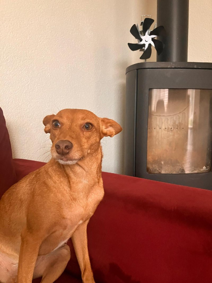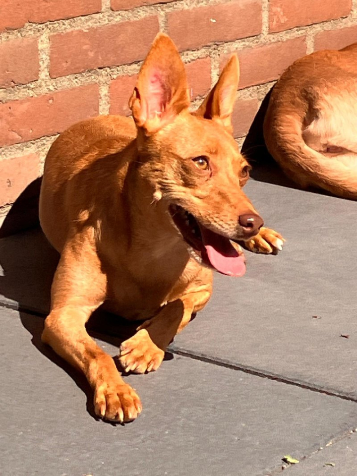 Pip is een kleine hond (Podenco Maneto): zij is ca. 35 cm hoog en weegt ca. 8 kg.