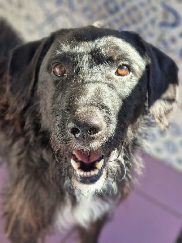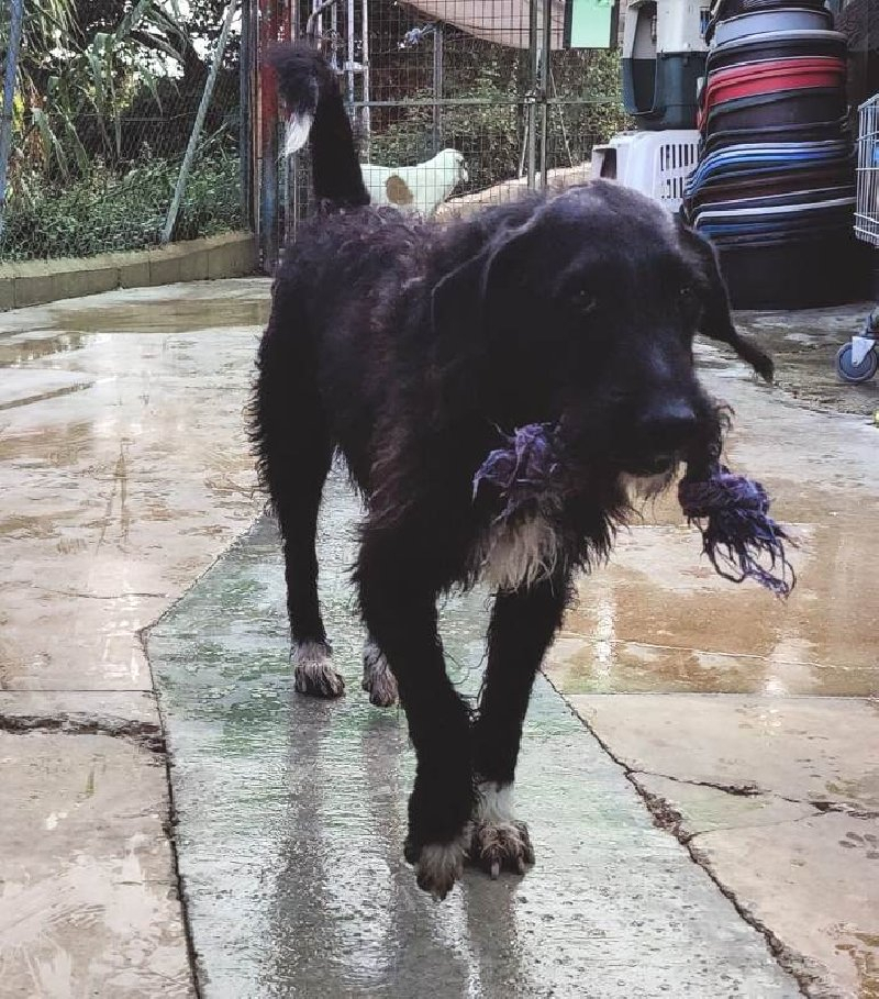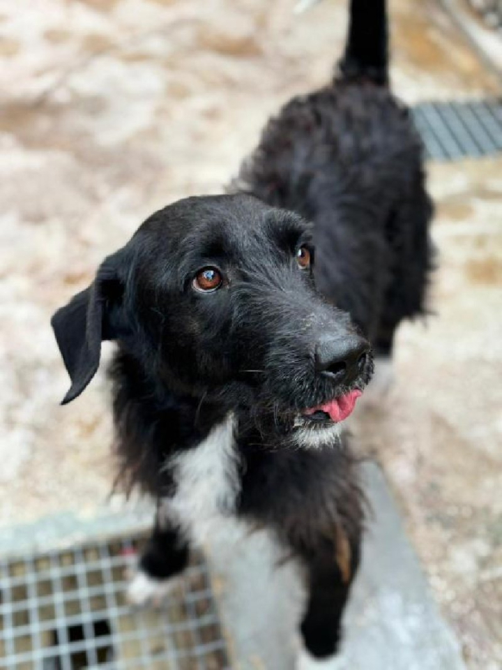 We haalden deze mooie jongen uit een van de vele dodenstations. Hij stond op de lijst om te worden ingeslapen. Een eenvoudig hondje zonder op te vallen, wat ruwharig, zwart, kansloos hier in dit land.