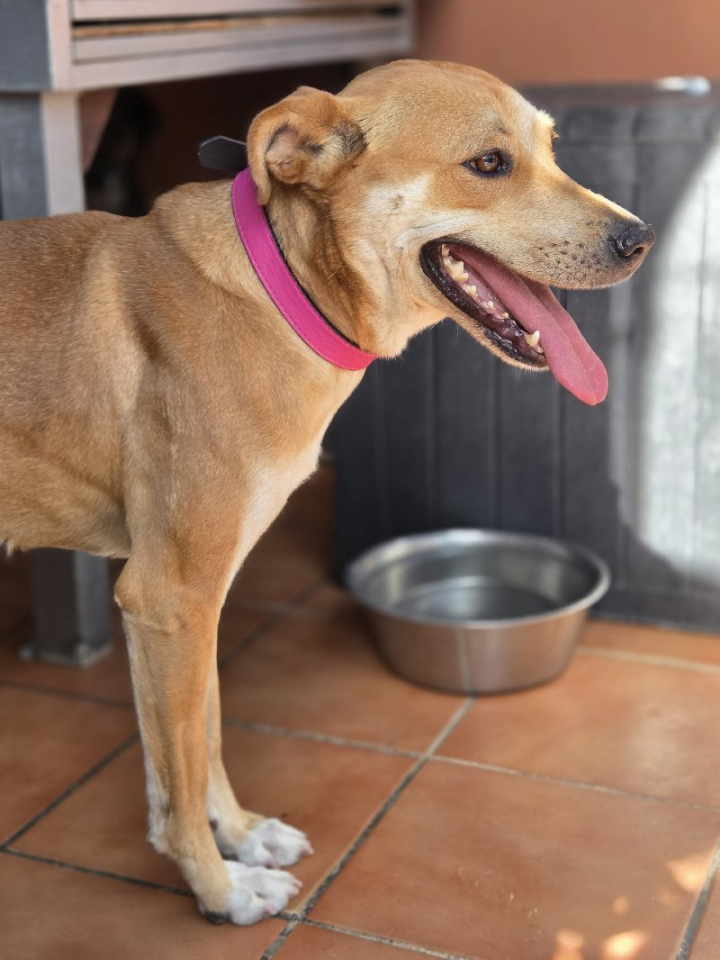 Tormenta is een grote hond (Cross): zij is ca. 56 cm hoog en weegt ca. 22 kg.