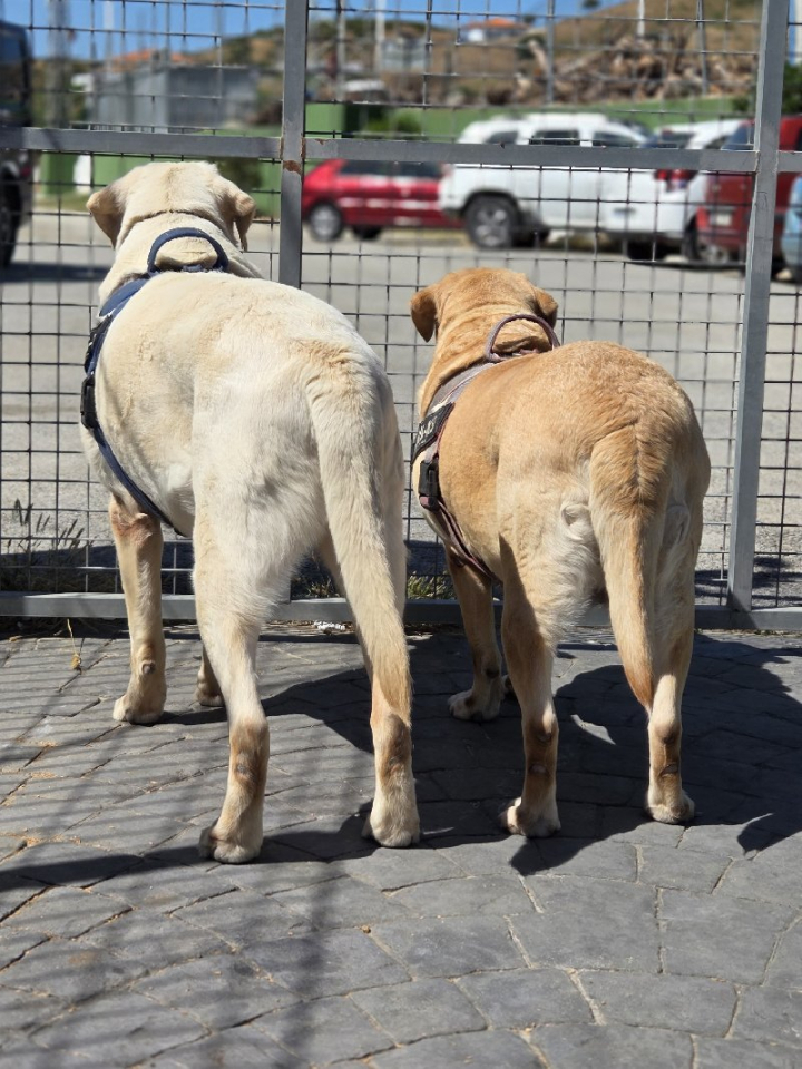 Een man stond aan de deur met twee goed verzorgde Labradors, een reutje van 8 jaar oud en een teefje van 7 jaar oud. Beiden gecastreerd en nauwgezet gevaccineerd. En toch moesten ze NU weg. Zijn vrouw had een ernstige hartziekte en kon de honden niet meer bij haar hebben. Als dat écht zo zou zijn zou het enorm erg zijn, zowel voor de honden als voor hun baasjes. En zo belandden deze twee totaal verloren zielen bij ons.