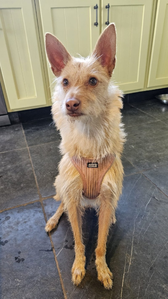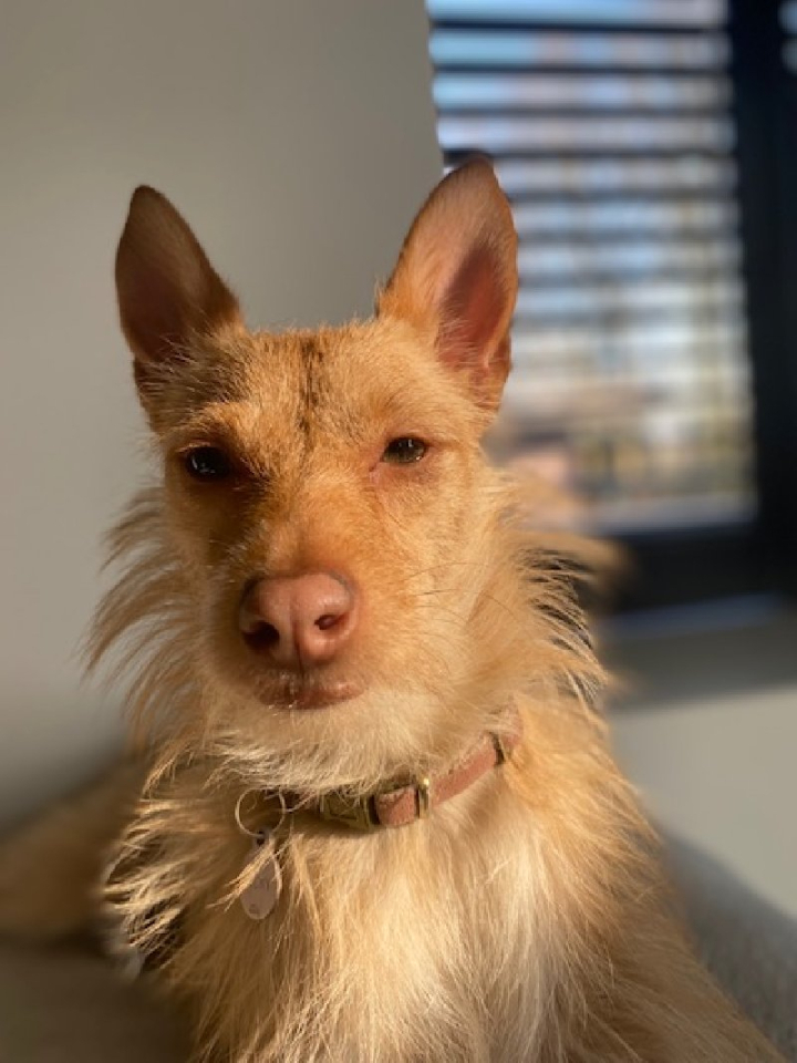 Lieve Becky, nu Mathilda, Podenco dame van 3 jaar oud, 8 kg en nog geen 40 cm schofthoogte, moet op zoek naar een nieuwe thuis en dit omwille van het overlijden van haar baasjes.