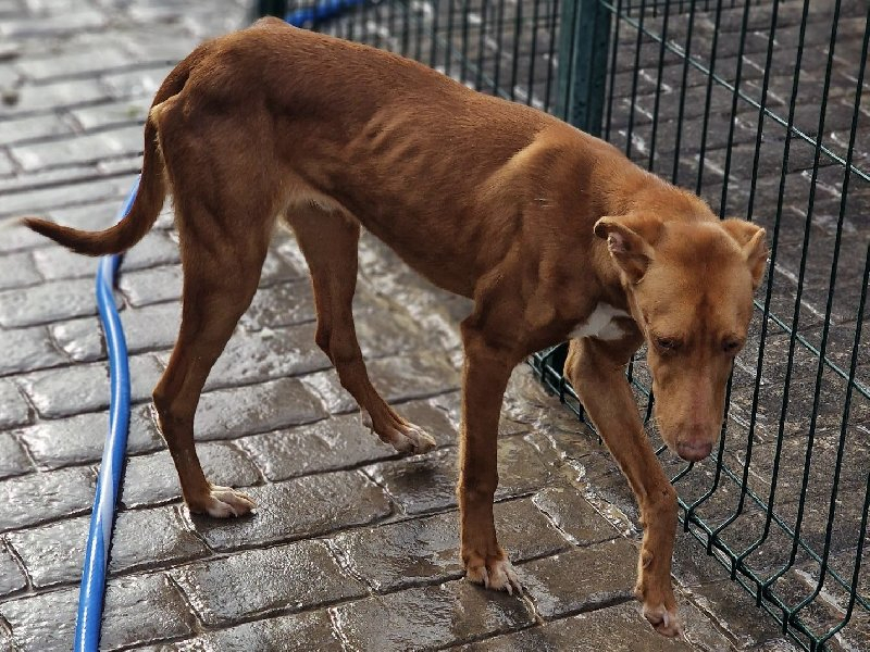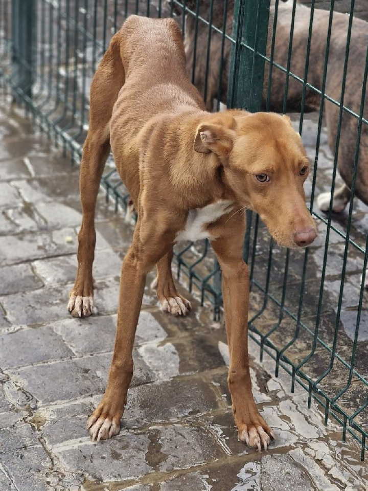 Riski doolde rond in de campo en hield zichzelf in leven op de avocado plantages waar hij dagelijks avocados at om het leven vast te houden. Toen we gevraagd werden hem te redden hebben we hem uiteraard opgenomen. Hij was een verlegen en graatmagere Podenco, die nu stilaan weer een beetje zichzelf wordt.