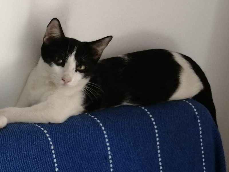 Paqui, een klein zwart/wit dametje die op zoek is naar haar forever gouden krabpaal