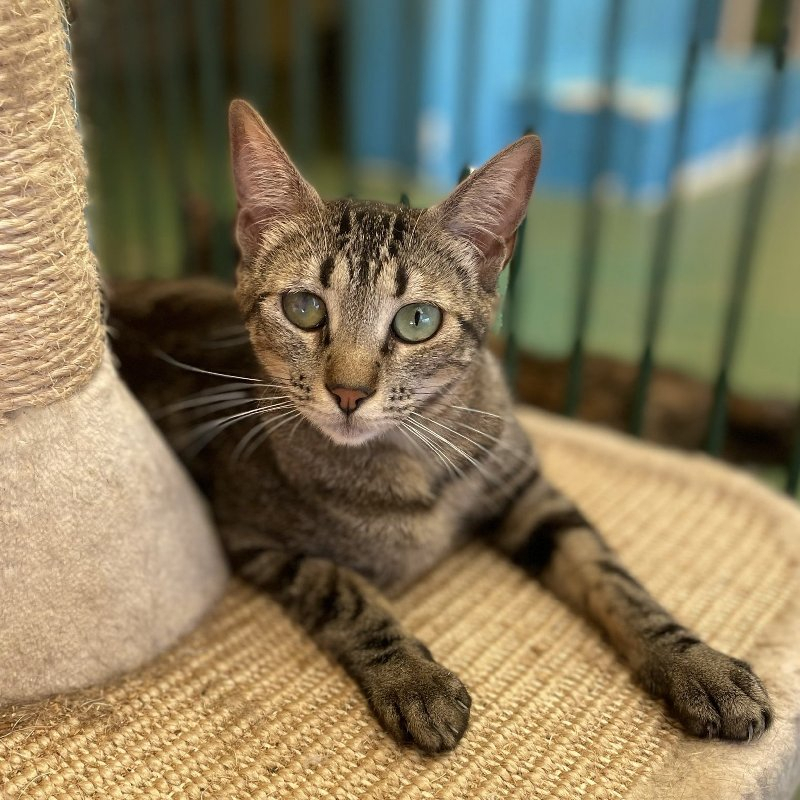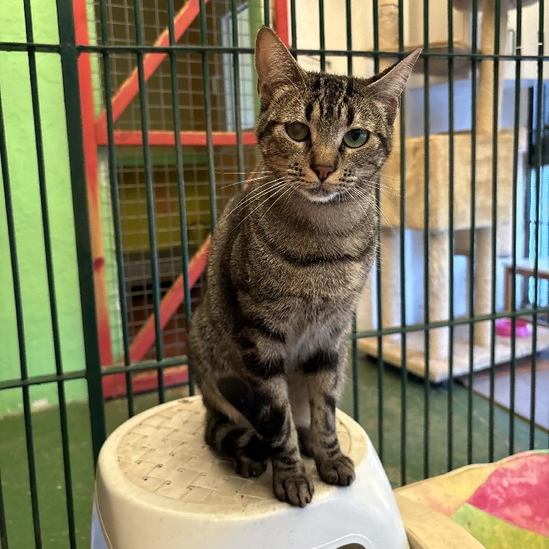 Tijgertje is een vrouwtje van ca. 1 jaar en 7 maanden oud (geboortedatum ca. 2024-05-12).