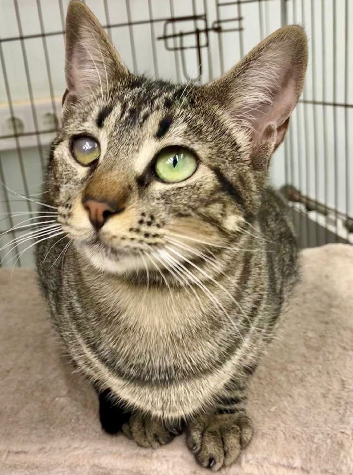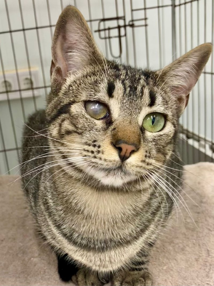 Tijgertje heeft een slecht oogje en dat zie je direct. Misschien is dat de rede dat ze nog geen geluk heeft gehad. Ondanks dat Tijgertje slecht zicht heeft met dit ene oogje, is Tijgertje gewoon een vrolijk katje die hoopt dat er een baasje is die voor haar ene blinde oogje valt en dit helemaal geen probleem vindt. Ze is een rustig katje, niet opdringerig, gek op haar vriendjes en vriendinnetjes in de opvang en een sociaal meisje.