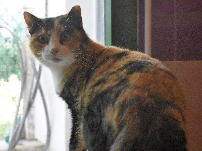 Deze prachtige tricolor is goed met andere katten maar heeft toch een bazig kantje, samenleven met een dominant soortgenootje zal iets teveel van het goed zijn voor deze dame.