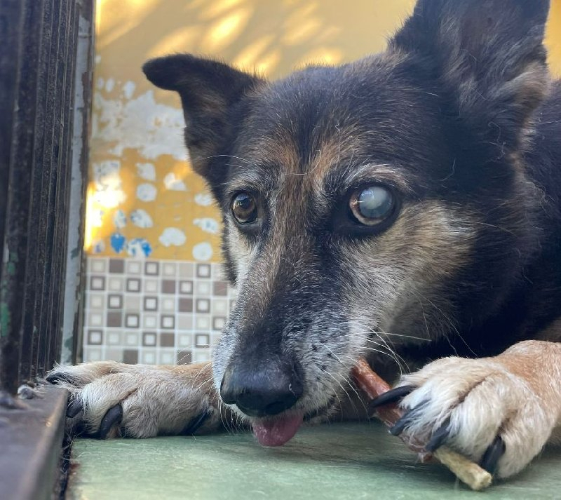 Hij heeft nooit echt geleerd wat het is om een huis te hebben, of een eigen mens. Maar we dromen ervan dat hij, ondanks zijn leeftijd en zijn verlegenheid, nog één kans krijgt - een thuis waar niemand iets van hem verwacht, waar hij gewoon hond mag zijn.