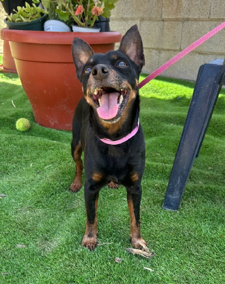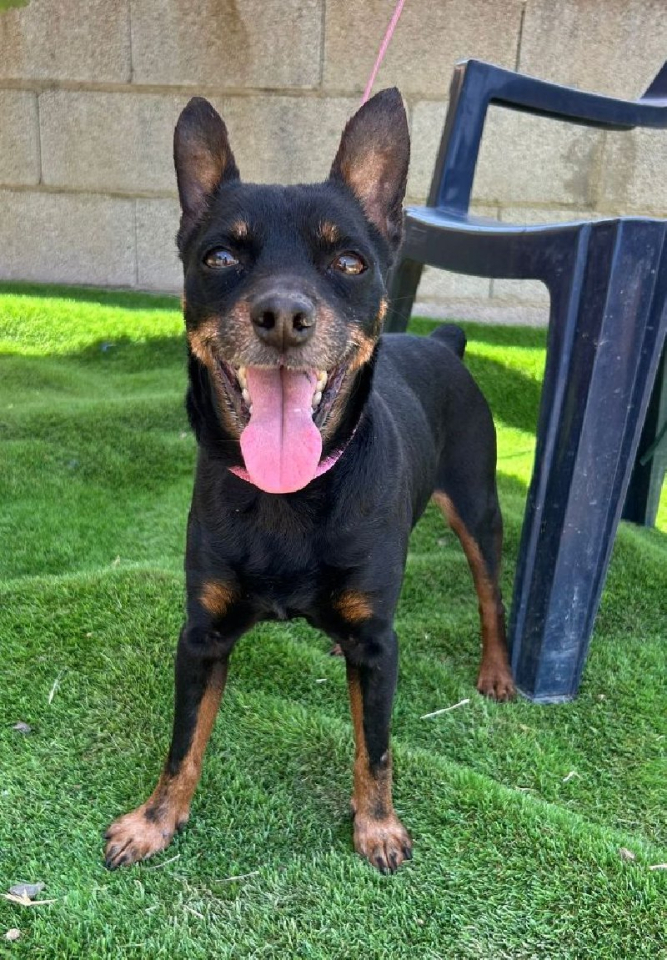 Tijdens ons bezoek aan onze collega's in Algeciras stond er een echtpaar aan de deur met een hondje. Een klein "mislukt" Pincherke dat al 3 maanden aan een keukentafel gebonden zat, want ze wisten niet hoe ze met hem moesten om gaan. Als hij blafte kreeg hij klappen, zo eenvoudig was het, en nu hadden ze gehoord dat wij hem misschien wel wilden redden.