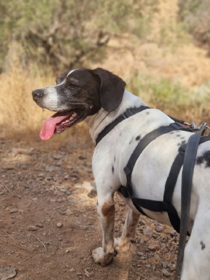 Kiko is een grote hond (Breton x Pointer): hij is ca. 52 cm hoog en weegt ca. 19 kg.