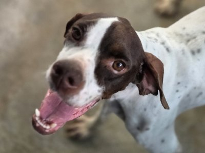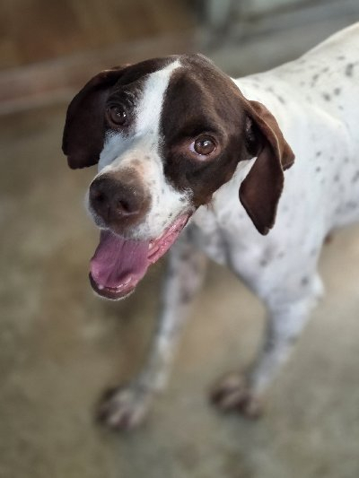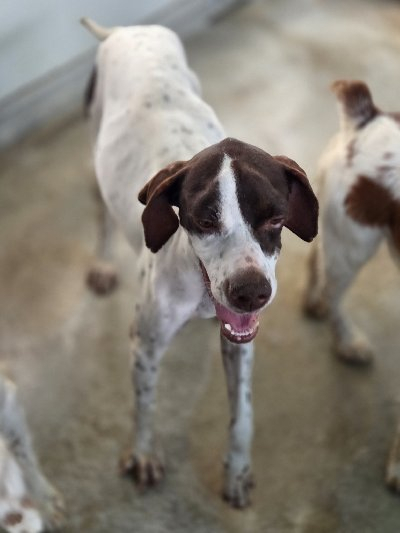 Deze lieve pointer werd bij ons gedumpt zeggende dat zij een boxer was, echter ze is een pointertje met het lieve karakter van dit ras. Ze is een blije ui die graag knuffelt en wandelt. Zeer sociaal met haar lotgenootjes, heel aanhankelijk met jan en alleman. Lotus is waarschijnlijk gered van een jager die haar afdankte omdat ze niet goed was voor de jacht. Wij zien dit lieverdje graag en wensen haar een hele mooie toekomst, .