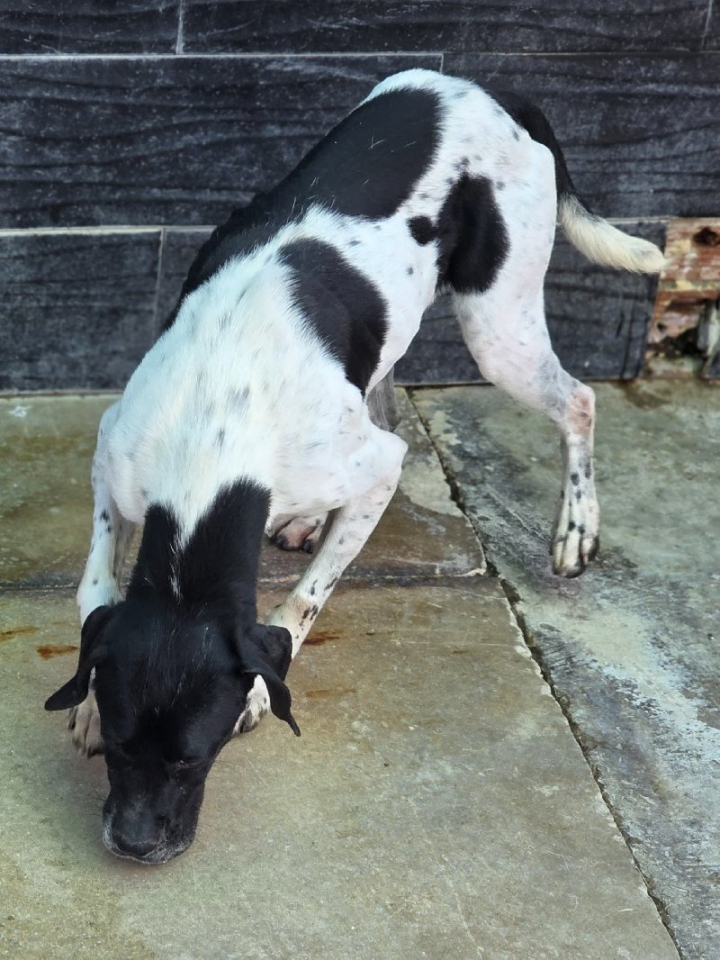 Popi is een cross pointer die werd gered uit een zeer verwaarloosde situatie. We namen een aantal honden op van deze reddingsoperatie. Het was een groot aantal honden die door de politie werd in beslag genomen door verwaarlozing. Popi is een hond die nog niet veel geluk kende en nu een andere kant van de mens leert kennen. Hij is een goede vriendelijk hond van natuur, sociaal en goed met zijn lotgenoten. We gunnen het deze lieverd zo, een bescheiden onopvallende hond die rustig en met veel hoop wacht op dat ene baasje.