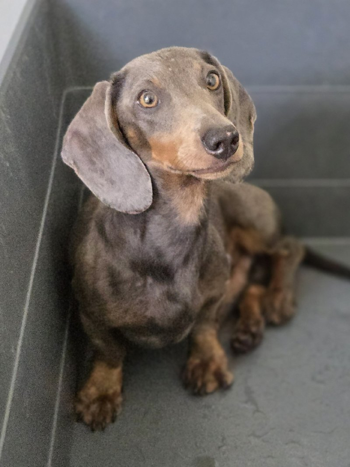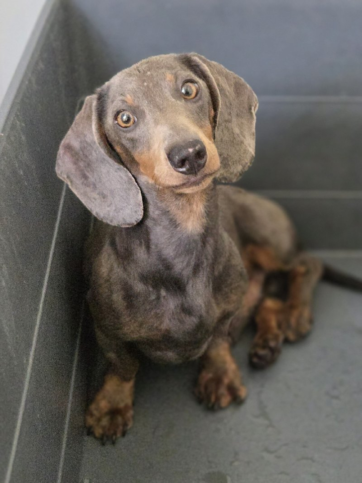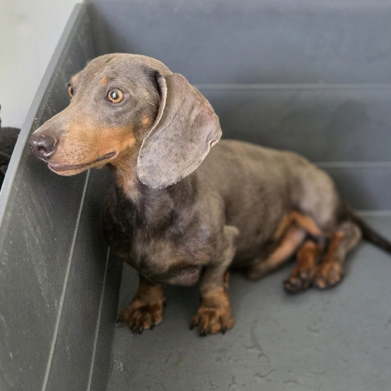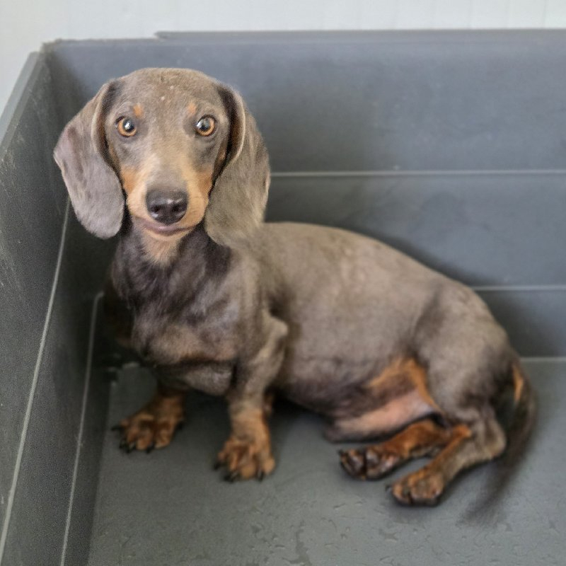 Reggie is een teckeltje gered van de broodfok. Als hij binnen kwam had hij geen haar en heel wat kwaaltjes die stilaan zijn weg gegaan maar het heeft tijd gekost. De behandeling dat deze teckeltjes kregen waren als bij alle broodfok walgelijk. Hij is een vriendelijk en typische teckeltje maar is een doorbijtertje als elke teckel is. Hij moet nog alles leren in een huis, dus er is werk aan deze metgezel. Hij is iets verlegen maar eens hij je kent komt hij los en is een en al aanhankelijkheid. Een prachtig hondje in zijn ras maar een hondje waar werk en geduld bij nodig zal zijn. Graag mensen die het ras kennen.
