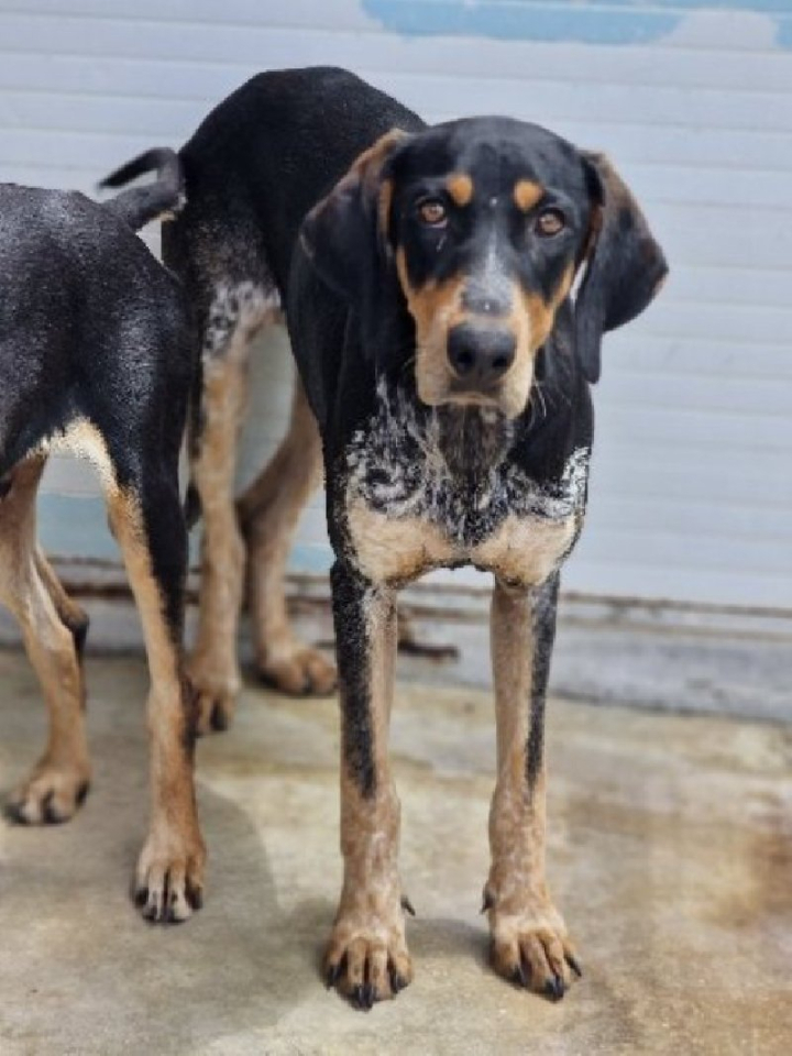 Tayson en Protos waren erg bang en onzeker in het begin, maar maken elke dag vorderingen. Ze zitten nu elk bij een andere zelfzekere hond, die niet bang is en hen het goede voorbeeld geeft, en je ziet hen evolueren, langzaam maar zeker komen ze tot zichzelf. Als je een van hen ter harte wil nemen, besef dan dat ze tijd, liefde, geduld en inzet vragen tot ze aan jou en jouw leven gewend zijn, dan komt het zeker goed!