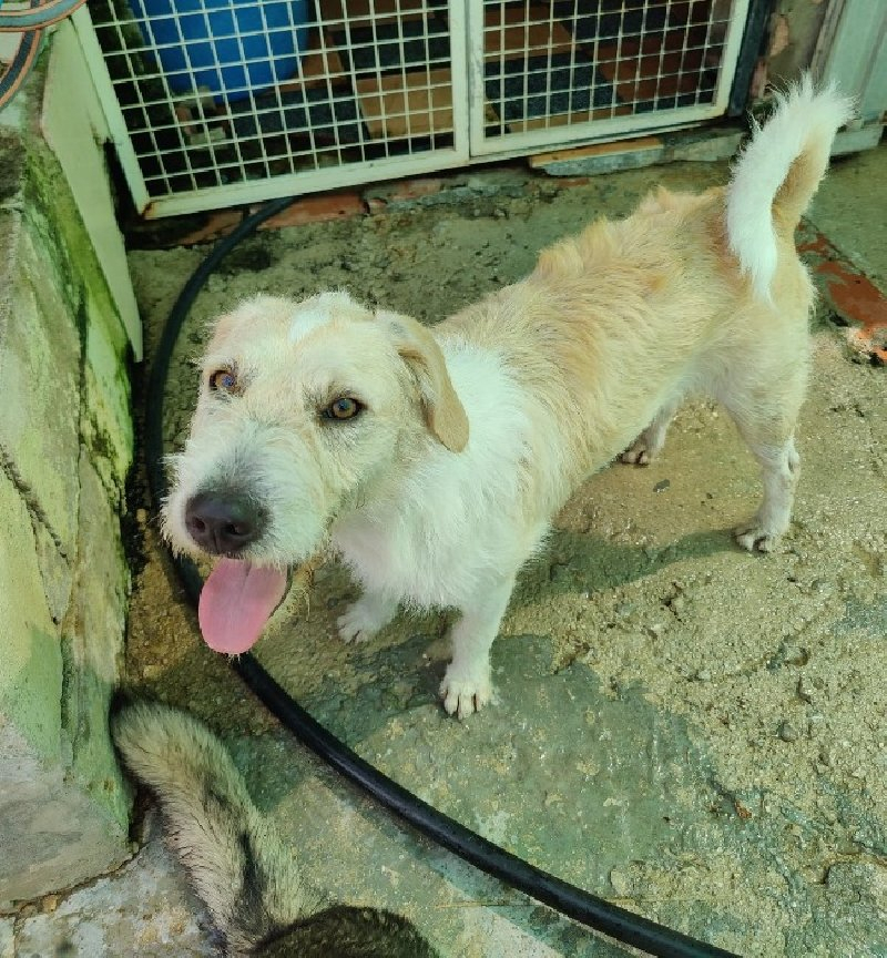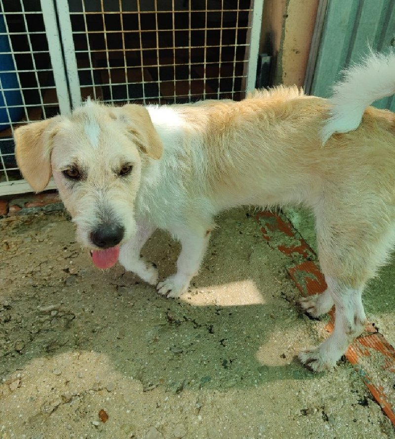 Temis verblijft al sinds hij een pup was bij ons, en ondertussen is dat alweer twee jaar geleden. Hij en zijn broer Teseo zijn de laatsten van hun nest die nog wachten op een eigen thuis. Temis is een prachtige, maar angstige hond die tijd nodig heeft om mensen te vertrouwen. Hij laat zich niet zomaar aaien ; dat vertrouwen moet je eerst verdienen. Zodra hij zich veilig voelt, staat hij open voor contact, al blijft hij het allemaal erg spannend vinden.
