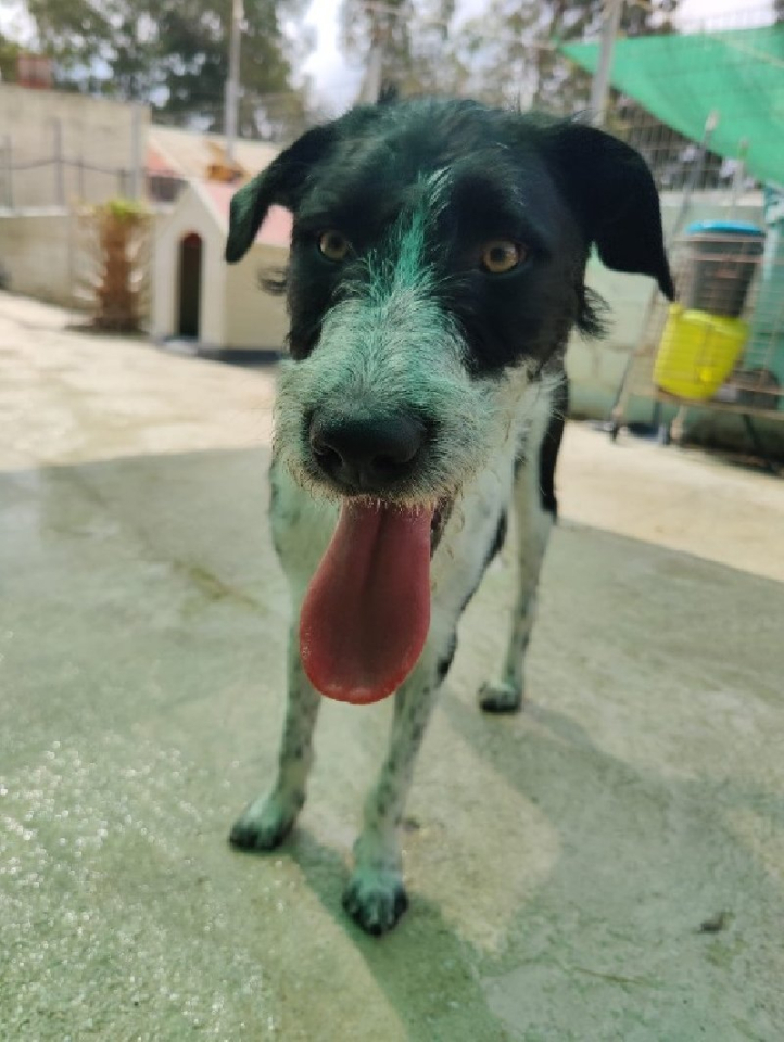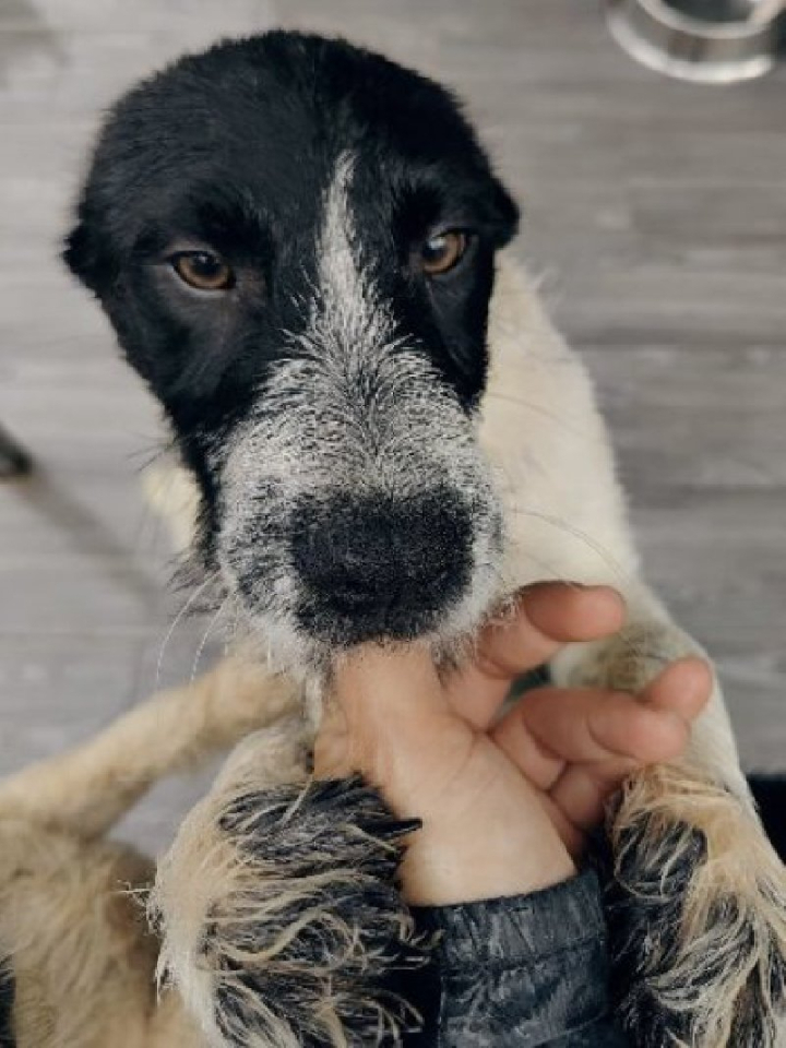 Teseo wacht, samen met zijn broer Temis, al twee jaar op een eigen thuis. Hij is een prachtige, maar erg angstige hond die nog veel begeleiding nodig heeft. Waar Temis voorzichtig contact durft te maken, kiest Teseo er vaak voor om weg te kruipen in een hoekje. Zijn eerste instinct is om afstand te nemen en zich te verstoppen. Wanneer hij iemand beter leert kennen, durft hij soms voorzichtig komen snuffelen, maar verder contact blijft voor hem nog een grote stap.