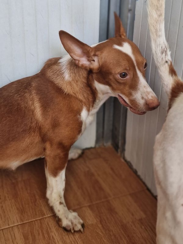 Anka is een kleine hond (Podenco Maneto): zij is ca. 36 cm hoog en weegt ca. 9 kg.