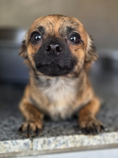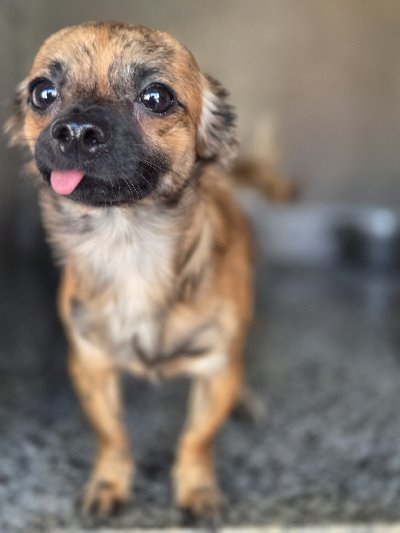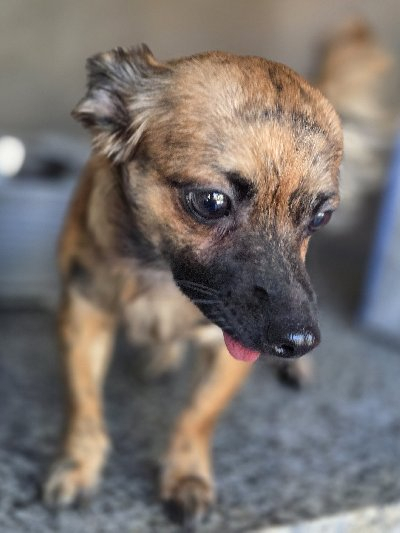 Klein maar dapper, een pienter ventje met allure. Hij werd afgestaan door zijn gezin omdat het hen teveel werd, een paar kg pure liefde. Hij is een vriendelijk en sociaal hondje dat goed met mens en dier omgaat. Hij is wel extreem mager momneteel en zal stilaan moeten opknappen. Een hondje dat ondanks dat hij zo klein is nog maar weinig geluk kende.