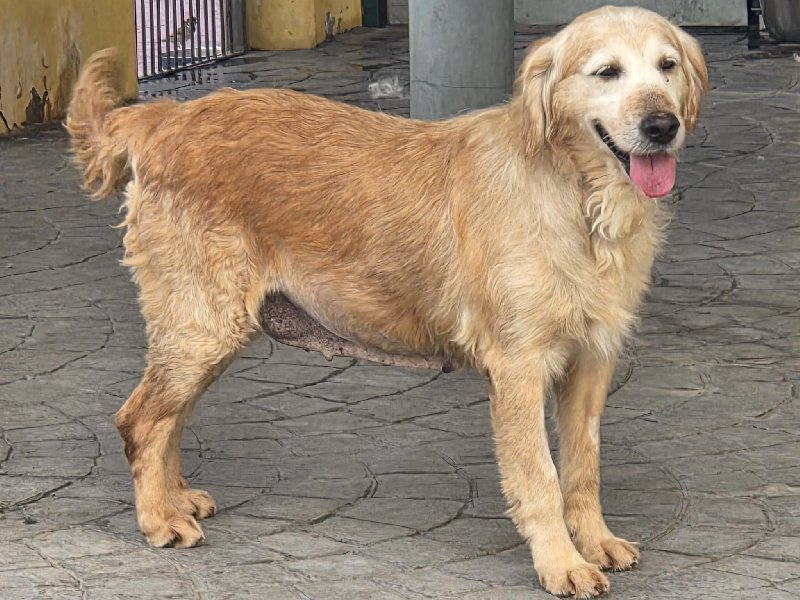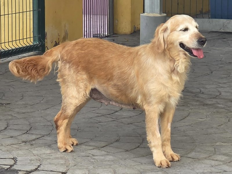 Mammi is een grote hond (Golden Retriever): zij is ca. 56 cm hoog en weegt ca. 28 kg.