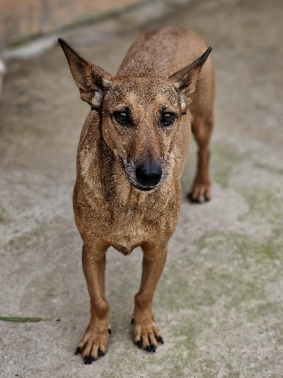 Carmen verblijft ondertussen al meerdere jaren in het asiel, een hond die in haar leven voordien altijd heeft moeten vechten voor haar recht op leven, een hond die altijd moest OVERleven, en dat merk je nog steeds. Ze is erg gesteld op de aanwezigheid van andere honden, maar mensen niet zozeer. Onbekende situaties vindt ze erg eng, en dan blokkeert ze, durft ze ook van zich af bijten uit angst,... Carmen is geen beginnershond, maar vergt een baasje met veel geduld, en de wil om hier aan te werken.