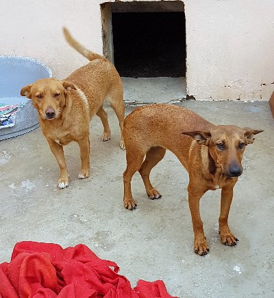 Carmen en Carmelo, twee Podencootjes, van de straat geplukt,... De dag dat Karma naar de luchthaven werd gebracht, liep deze Podenco doelloos over de carretera, een van de meest gevaarlijke autostrades die je je kan indenken,... Onze vrijwilligers hebben toen op alle mogelijke manieren deze lieverd van de straat proberen plukken,... Carmen kwam uiteindelijk zelf naar hen toe en sprong gewillig de auto in, alsof ze wist dat het goed zat,... Toen ze de auto terug wilden starten stond Carmelo plots voor hen met vragende ogen, om ook mee te mogen gaan met zijn vriendin. Bij het openen van het portier sprong hij gelijk binnen en legde zich naast haar neer,... Het was alsof ze genoeg hadden van hun twijfelachtige bestaan, alsof ze aangevoeld hadden dat deze mensen het goed met hen voor hadden, en beiden sliepen binnen de 5 minuten als een blok op de achterbank. Beiden zijn heerlijke Podencootjes, goede en lieve karakters, sympathiek en aanhankelijk, dankbaar als geen een. Hun namen hebben ze te danken aan onze geliefde Karma, die die dag naar huis vloog,... Dankzij zijn vlucht naar zijn warme mand, kwamen deze twee achtergelaten Podenco's in ons midden,... Carmen en Carmelo,...