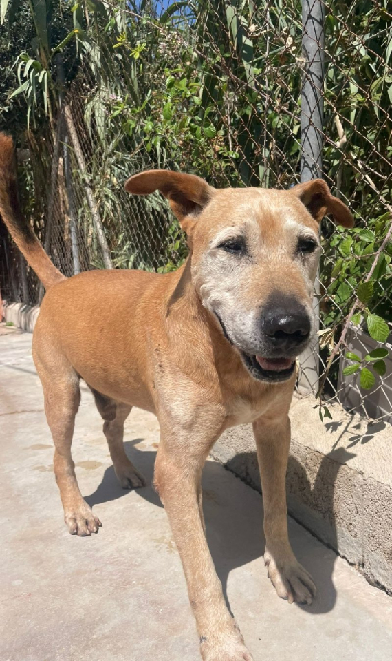 Toen een vrijwilliger uit het dodingstation een aantal hondjes naar ons bracht, waren we verrast door het extra geschenkje dat erbij zat. Resi is een oudere Podenco mix met een verleden waar we geen weet van hebben, want helaas kan hij het zelf niet vertellen. Hij was gevonden langs de kant van de weg, helemaal alleen.