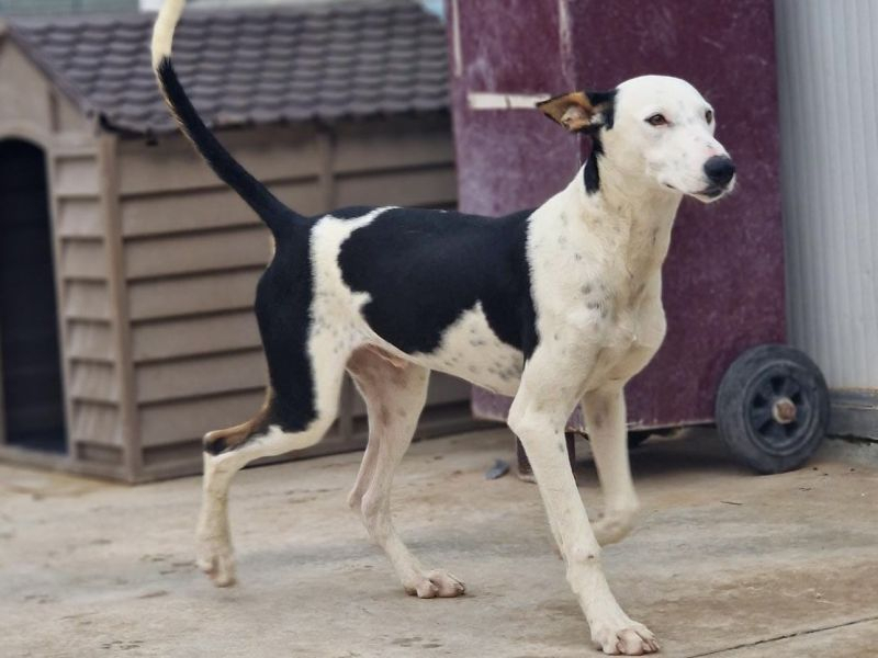 Toontje is een middelgrote hond (Cross Podenco): hij is ca. 47 cm hoog en weegt ca. 17 kg.