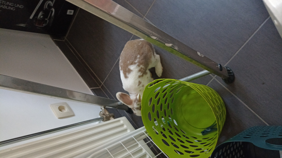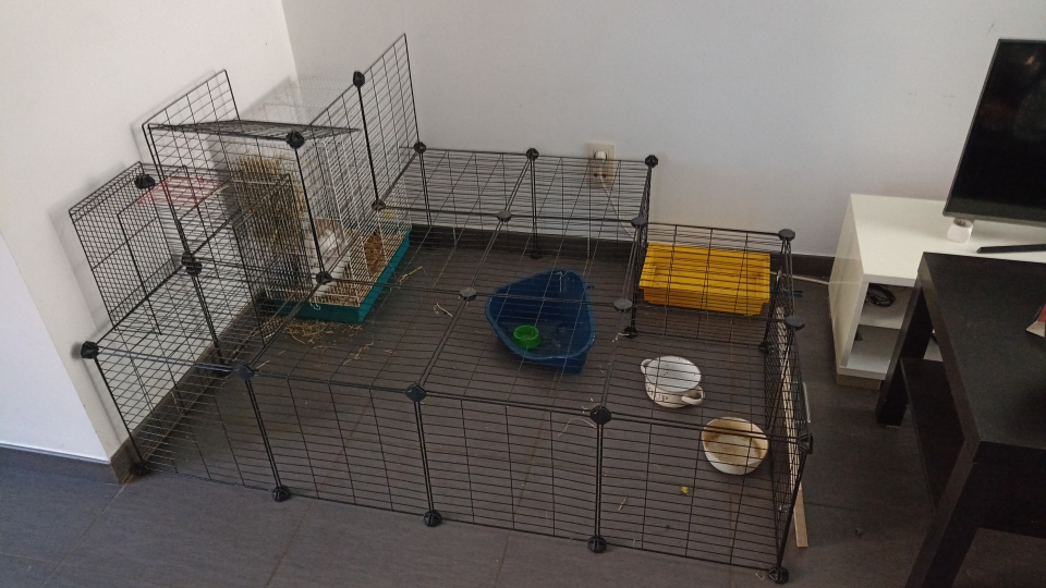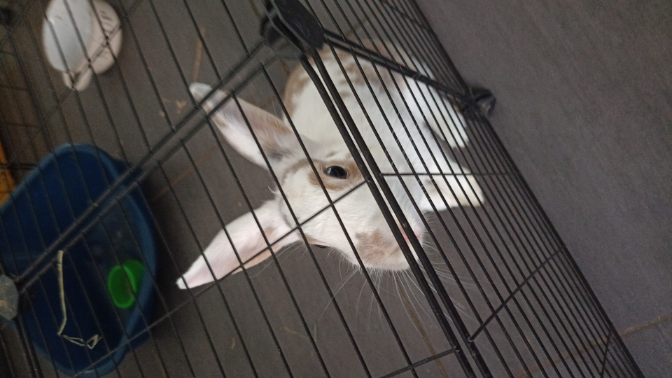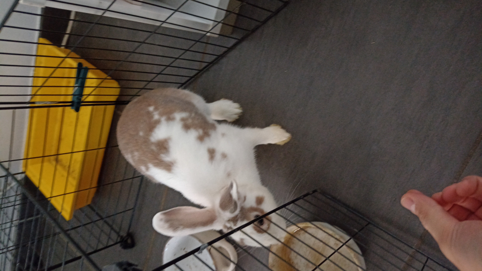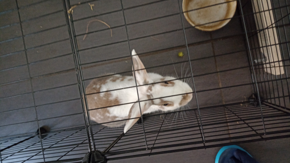 Moccha is a friendly 1 year old rabbit. She likes to lay around us and she has never shown aggressive behaviour. She learned to pee and poop in th corner of the cage too! Two cages are included if you decide to adopt her!