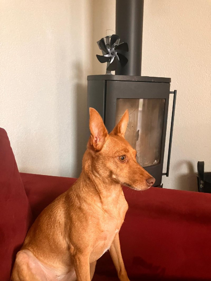 Pip is een kleine hond (Podenco Maneto): zij is ca. 35 cm hoog en weegt ca. 8 kg.