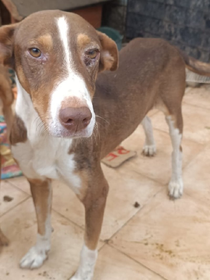 Neron kwam binnen bij Isabelleke als een mager verwaarloosd skelet. Veel goeds had hij nog niet gezien in zijn al zo korte leventje. Hij kwam erg ziek binnen maar is gelukkig nu aan de beterhand. Hij is een vriendelijke sociale, iets verlegen podenco met zeer speciale kleuren. Mooie hond, met een goed karakter maar een jongen die nog moet leren aanpassen. Hij is geliefd door ons allen met zijn zachtaardige aard en lieve snoet.