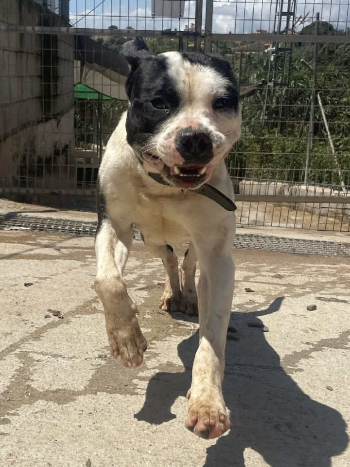 Pirata is een grote hond (Pitbull Terrier): hij is ca. 52 cm hoog en weegt ca. 26 kg.