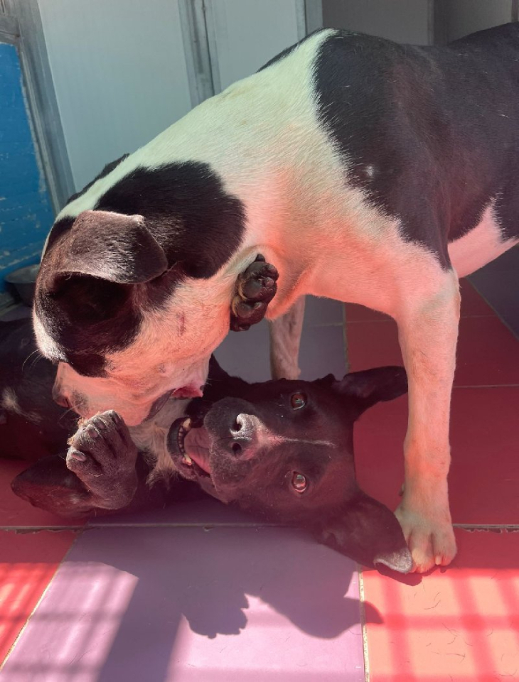Pirata en Hollie zijn nog steeds beste vrienden, Pirata is een sociale jongen die graag met iedereen wil bevriend zijn. Elke dag lopen ze flink voorbij de kliniekhonden op weg naar het veld om hun energie wat kwijt te raken en Pirata wil dan graag iedereen gedag zeggen. Deze knapperd is echter ook een flinke beer, een sterke vent die geniet van knuffels en aandacht van zijn verzorgers. Voor de liefhebbers van het ras is Pirata zeker en vast een ideale vriend om de wereld te gaan verkennen!