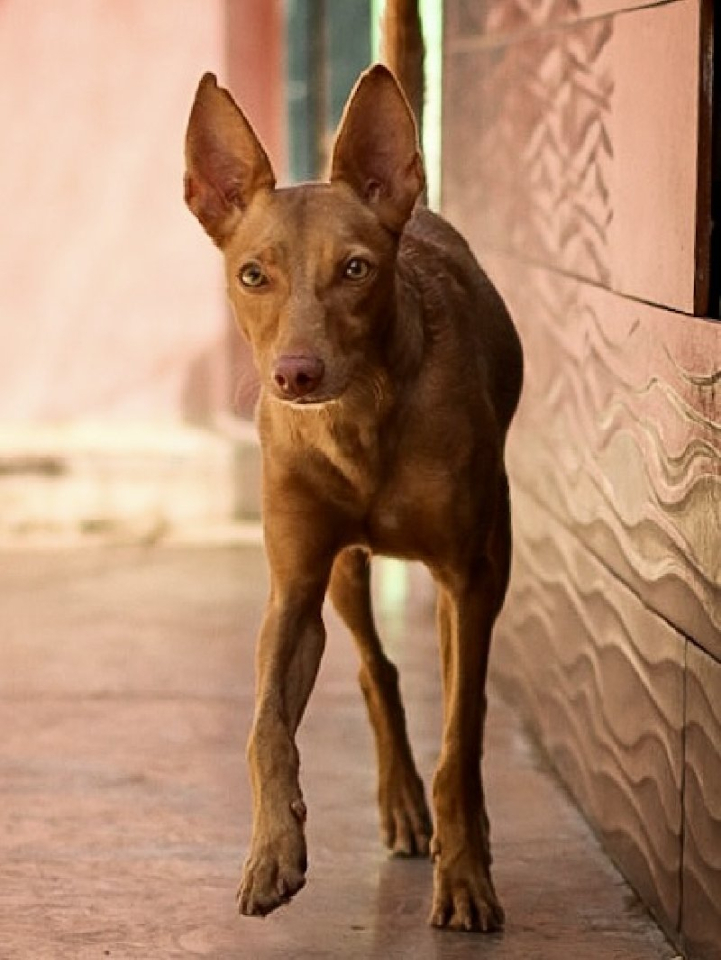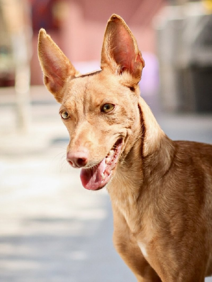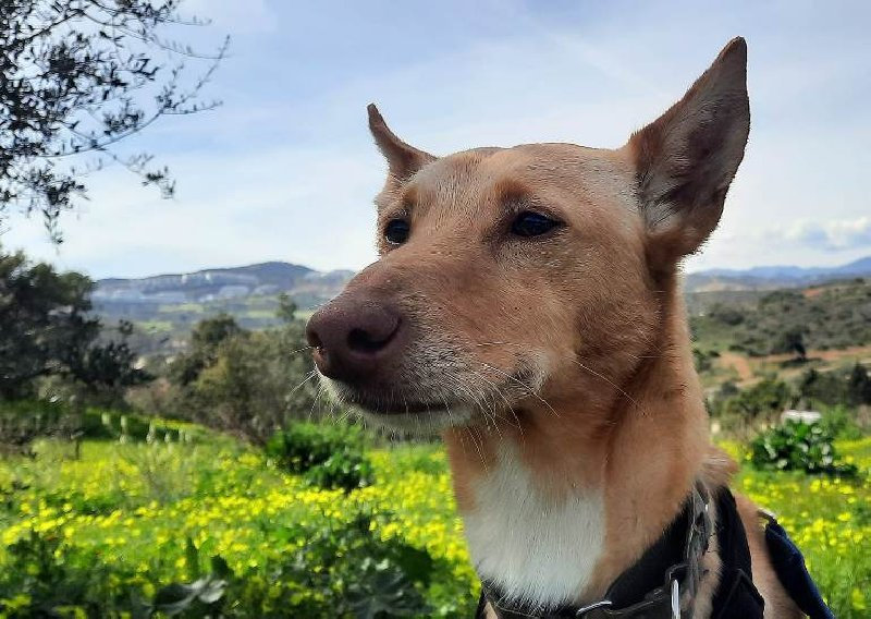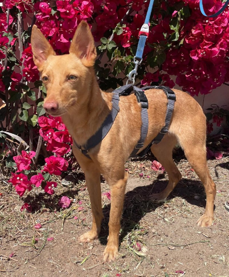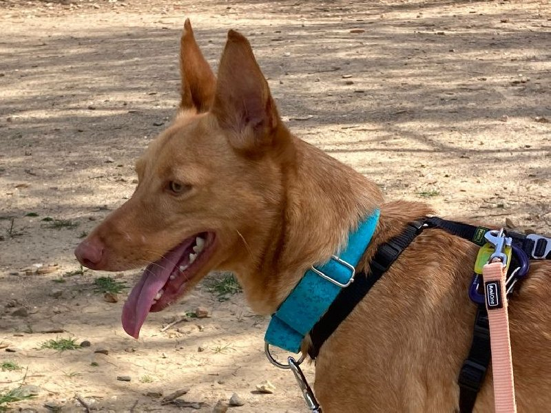 Silas is een middelgrote hond (Podenco): hij is ca. 40 cm hoog en weegt ca. 10 kg.